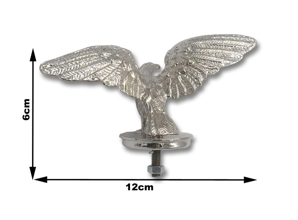 Stylowa i solidna metalowa ozdoba, która podkreśli unikalny charakter Twojego motocykla. Ten precyzyjnie wykonany, chromowany ornament w kształcie orła świetnie sprawdzi się na błotniku choppera, draga lub innego jednośladu.
