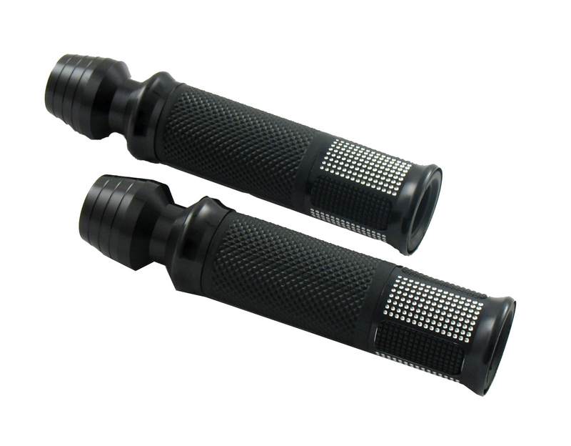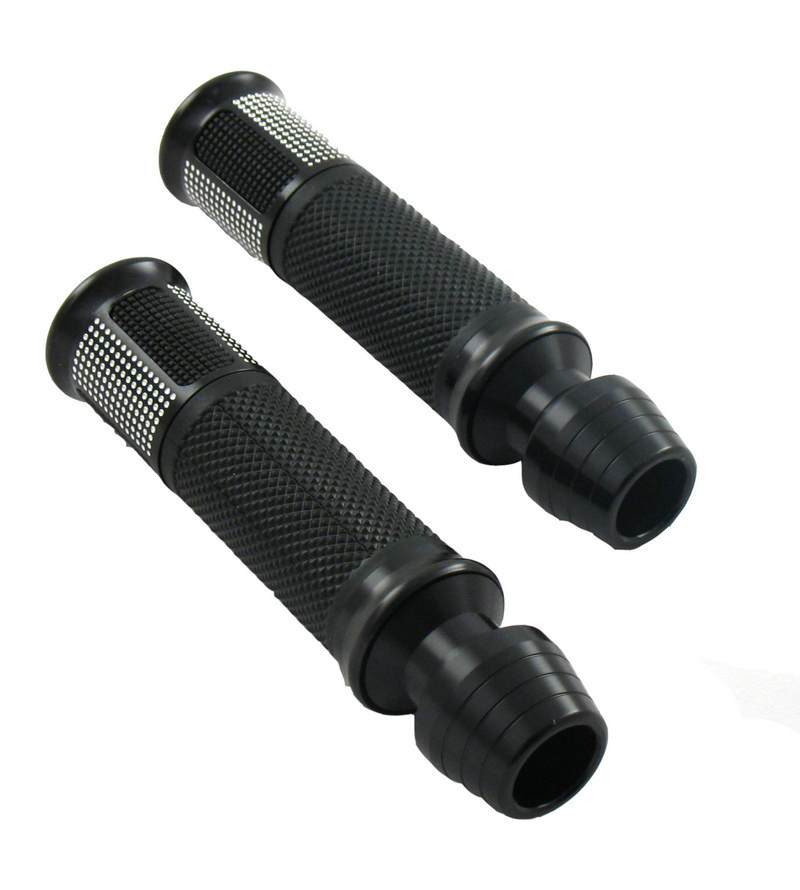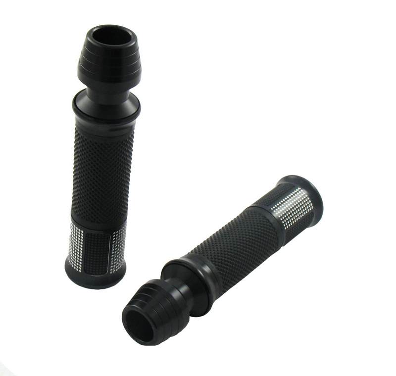 Manetki motocyklowe czarne z końcówkami kierownicy.