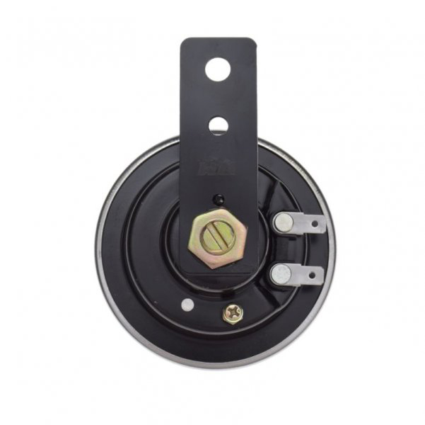Uniwersalny sygnał dźwiękowy. Metalowy, solidnie wykonany w kolorze srebrnym.