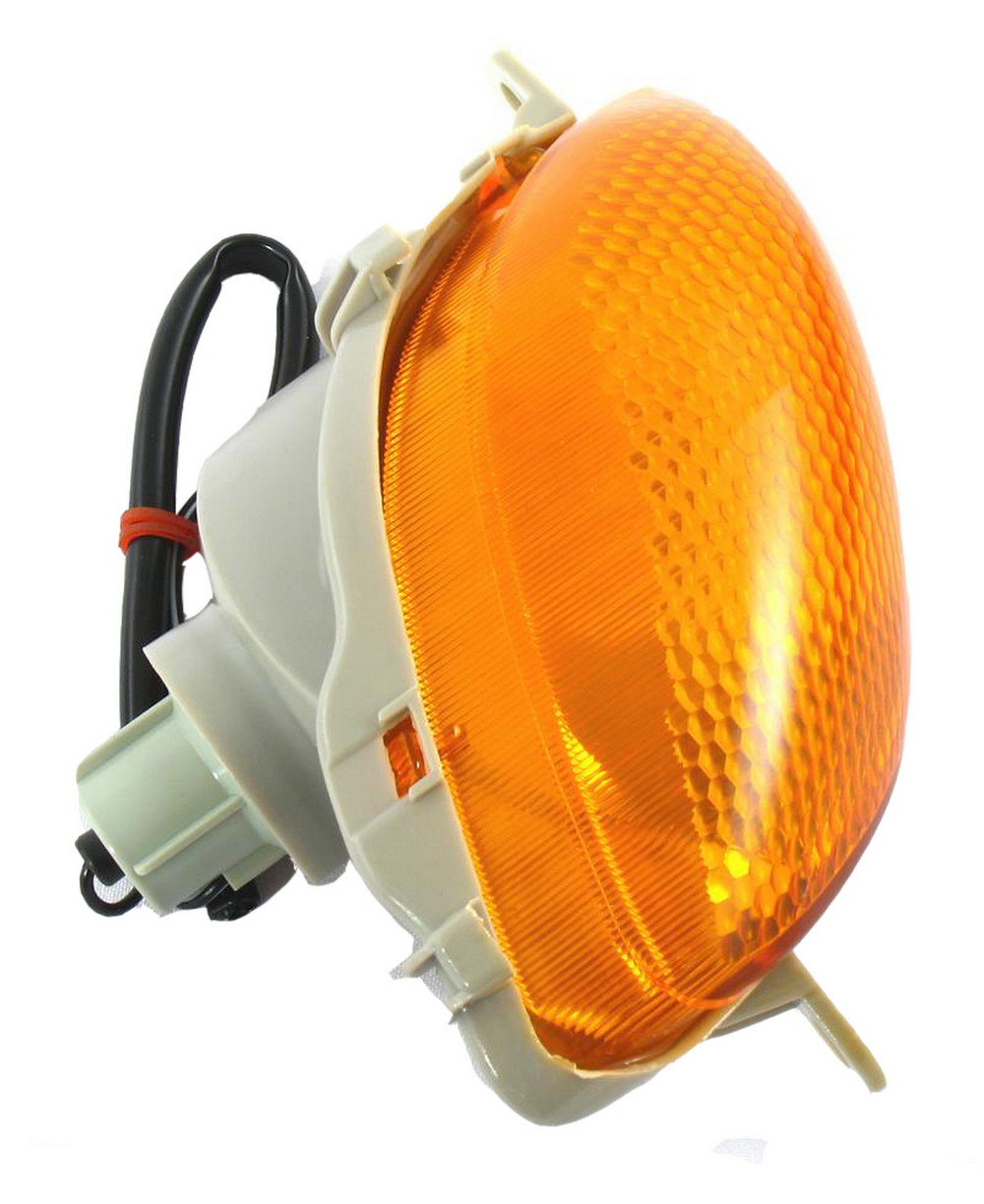 Kierunkowskaz ma pomarańczowy klosz, szarą obudowę, żarówkę 12V/23W.