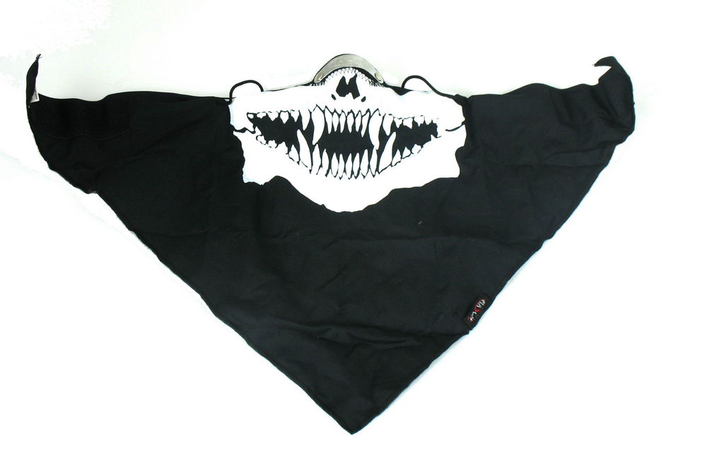 - Ochronna chusta, bandana motocyklowa z nadrukiem imitującym czaszkę.