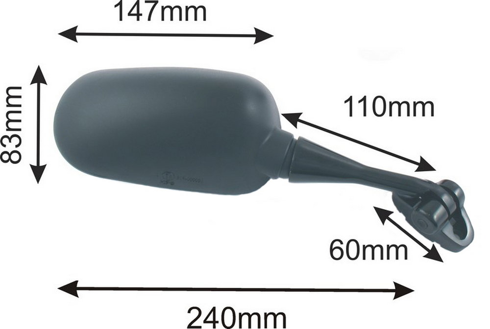 Lusterka dedykowane są do Hondy CBR 600 Hornet, ale przeznaczone są do wszystkich motocykli z mocowaniem o podanych wymiarach. Ramię lusterka z metalu, obudowa lustra z tworzywa.