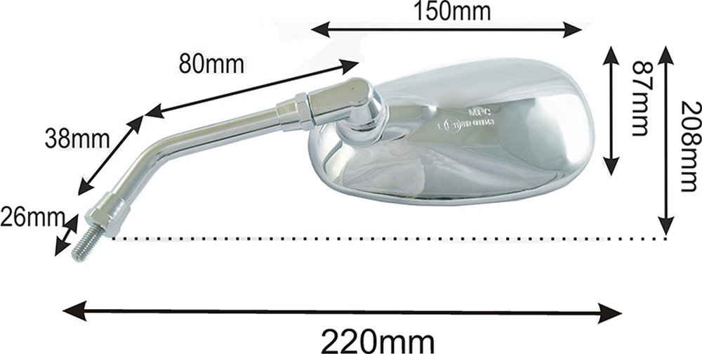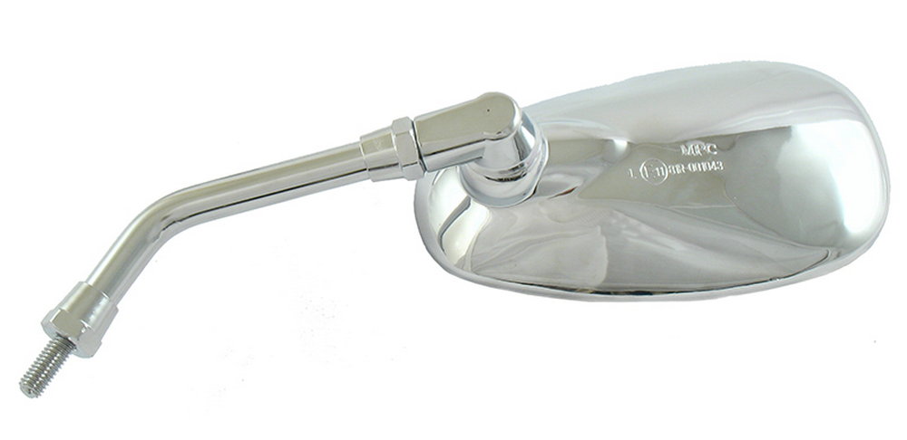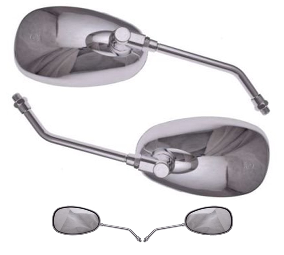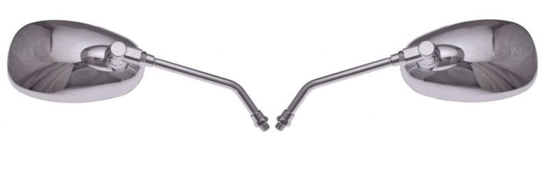 Lusterka wykonane są z wytrzymałych materiałów odpornych na warunki atmosferyczne oraz wibracje, zapewniając stabilny obraz i szerokie pole widzenia podczas jazdy. Ich owalny kształt i srebrne wykończenie nadają klasyczny, elegancki wygląd, a mocowanie M10 umożliwia łatwy i szybki montaż w większości modeli motocykli.