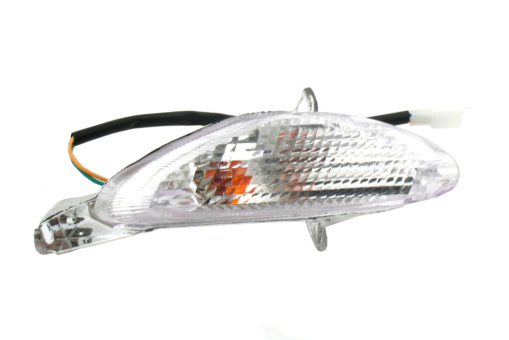 Kierunkowskaz motocyklowy biały w owiewkę - lewy