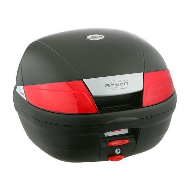 W komplecie załączone są dwa kluczyki, oraz mocowania ze śrubami umożliwiające łatwy montaż. Uniwersalna płyta montażowa, pozwala na montaż prawie na wszystkich bagażnikach w motocyklach jak i skuterach. Kufer spokojnie mieści 1 kask .