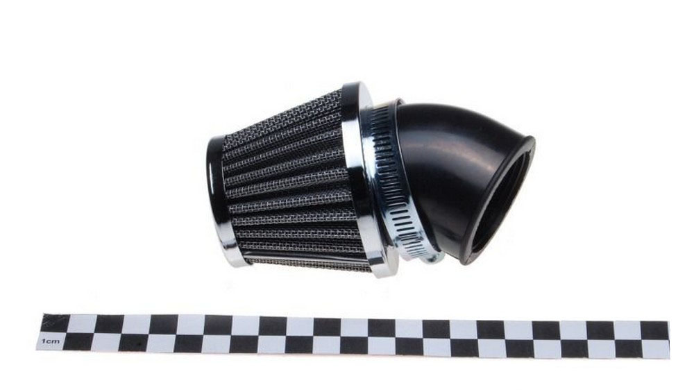 Filtr powietrza stożkowy w chromie 28mm gięty pod kątem 45 stopni