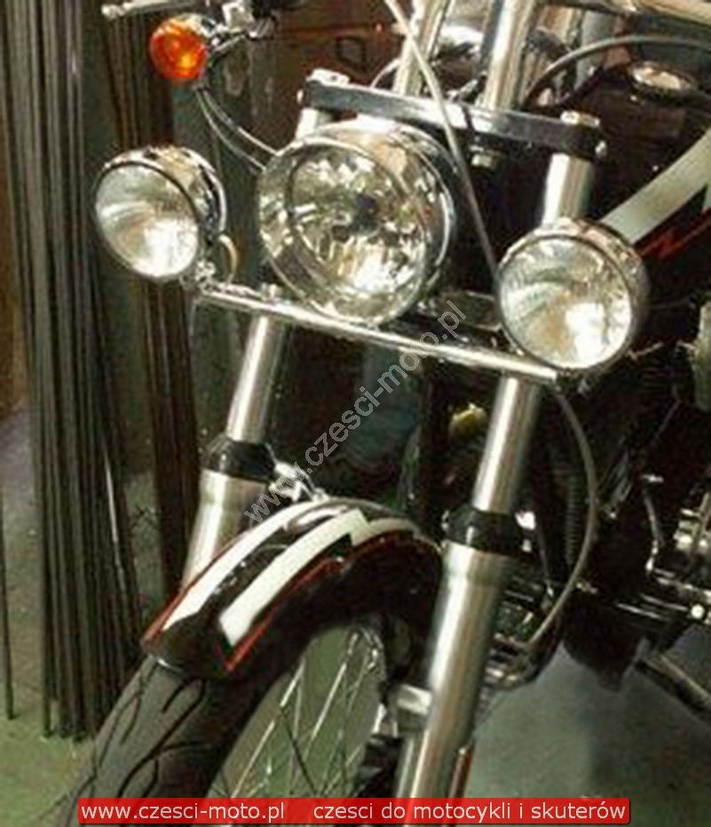 W całości chromowany, wykonany z największą dbałością o szczegóły. Produkt dedykowany jest pod konkretny model, dlatego nie wymaga dokonywania żadnych przeróbek, dogięć czy modyfikacji. Mocowany jest bezpośrednio do oryginalnych miejsc montażowych motocykla. Dodatkowe lampy tzw. „Passing Lamps” stanowią niezwykły dodatek do Twojego motocykla, powiększają go optycznie i czynią z niego rasową maszynę.
