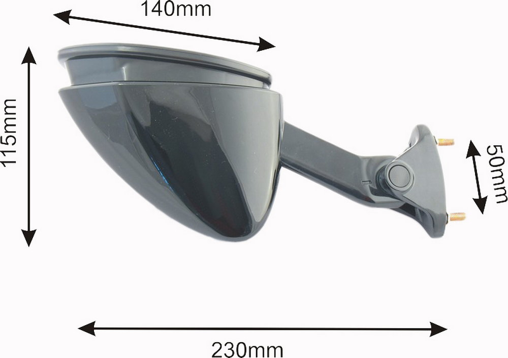 Lusterko w kolorze czarnym, sferyczne, posiada pełną regulację.