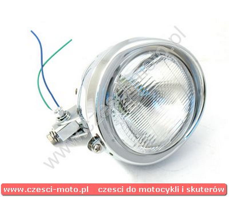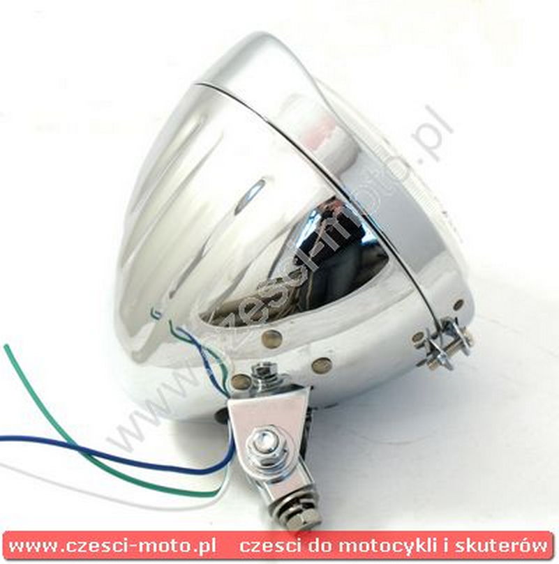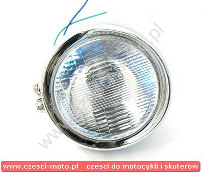 Obudowa metalowa, chromowana, w komplecie z żarówką H4 12V 60/55W (światła mijania i drogowe).