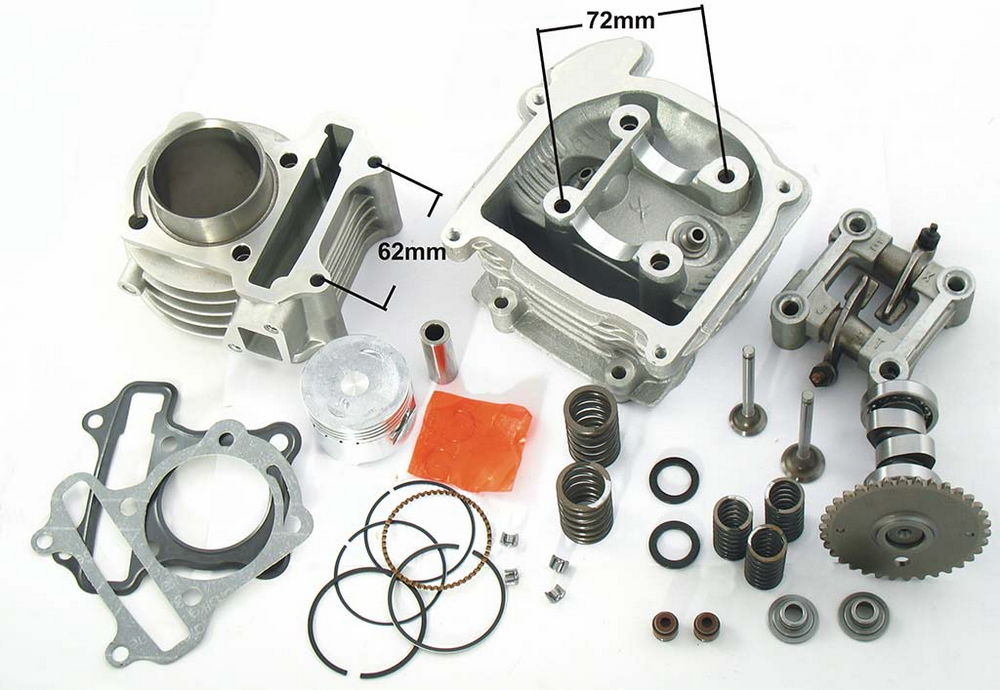 Zestaw kompletny: cylinder + uzbrojona głowica zwiększający pojemność silnika na 80ccm.