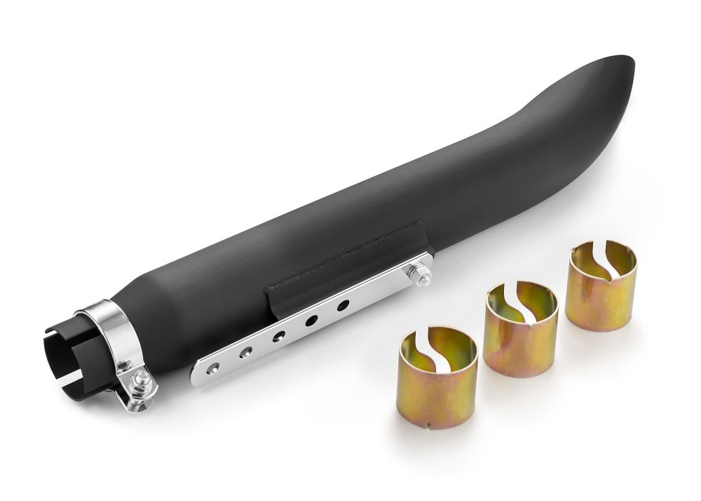 Nowy czarny matowy tłumik typu gwizdek a’la Virago to propozycja dla motocyklistów szukających mocnego, charakterystycznego dźwięku oraz klasycznego wyglądu inspirowanego kultową Yamahą Virago. Tłumik został zaprojektowany z myślą o motocyklach typu chopper, cruiser, custom oraz motocyklach turystycznych, ale dzięki swojej konstrukcji może być używany również w innych jednośladach i projektach customowych.