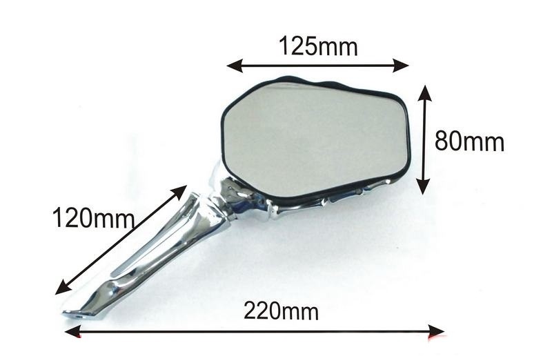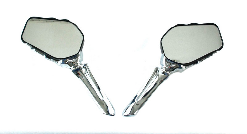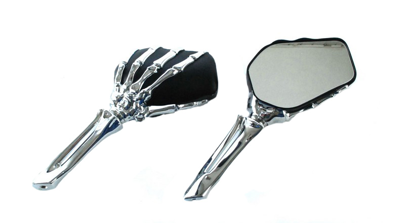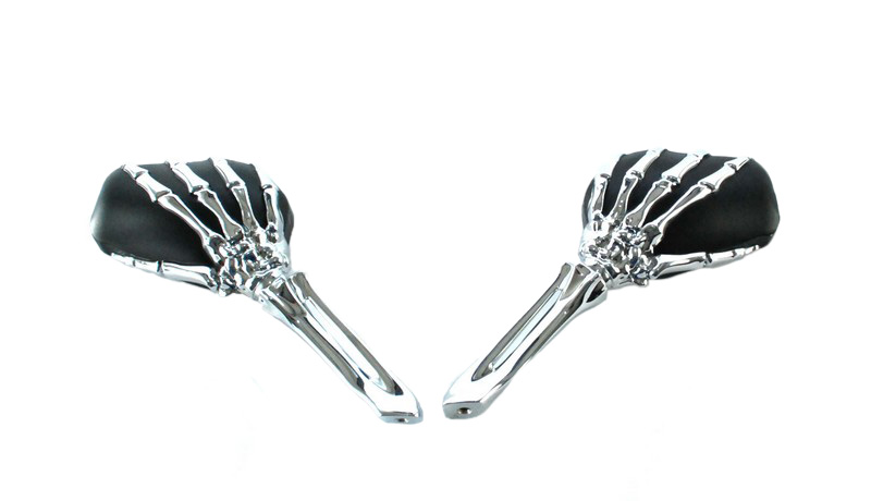 Lusterka w kształcie rąk szkieleta, z pewnością da Ci oryginalnego wyglądu. Świetnie się prezentują i co ważne ich duża powierzchnia sprawia że wszytsko za nami jest dobrze widoczene. Możesz być pewny że inwestując w tego typu ozdobne lusterka, nie ujdziesz nigdy uwadze żadnemu przechodniowi bądź drugiemy motocykliście. Pasują do większości motocykli z mocowaniem lusterek na gwint M10. Dodatkowe redukcje na gwint lewy pozwala na zamontowanie również w motocyklach YAMAHA.