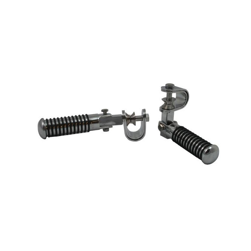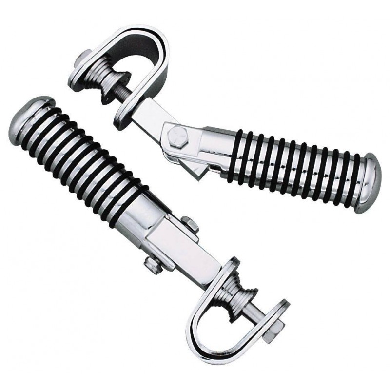 Chromowane, okrągłe podnóżki w czarne gumowe prążki. Nadają każdemu motocyklowi niepowtarzalnego stylu.
