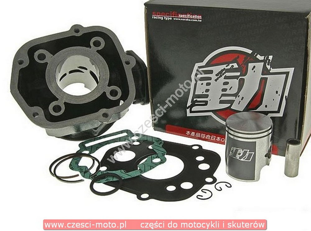 Kompletny żeliwny zestaw tuningowy znanej firmy Naraku Performance o pojemność nominalnej 50cc do motorowerów biegowych z silnikami D50B0 (czyli tak zwane silniki Piaggio).