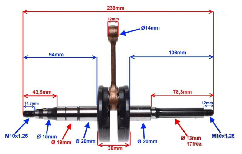 Wał korbowy skutery 2T /17 frezów Yamaha Aerox