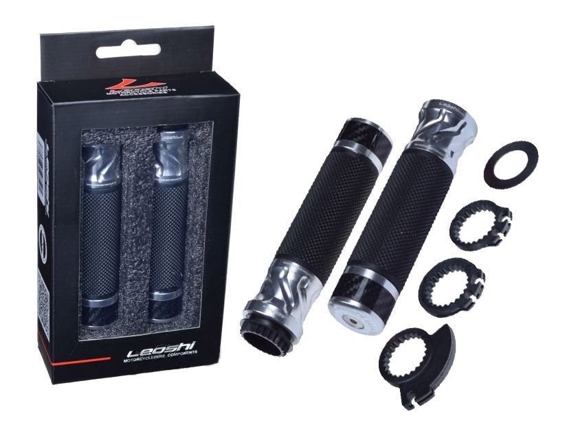 Kratowane gumy zapewniają pewny chwyt manetek, zakończone ciężarkami.