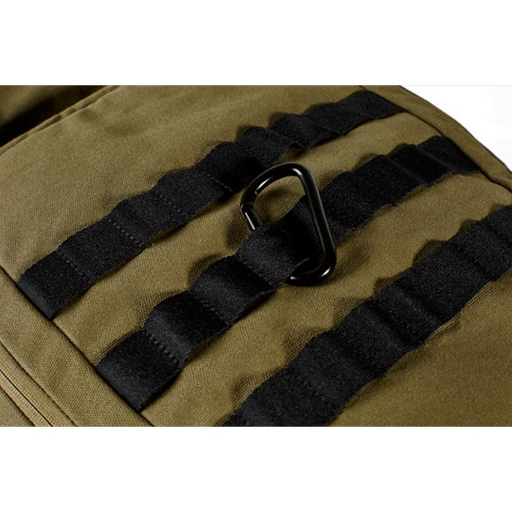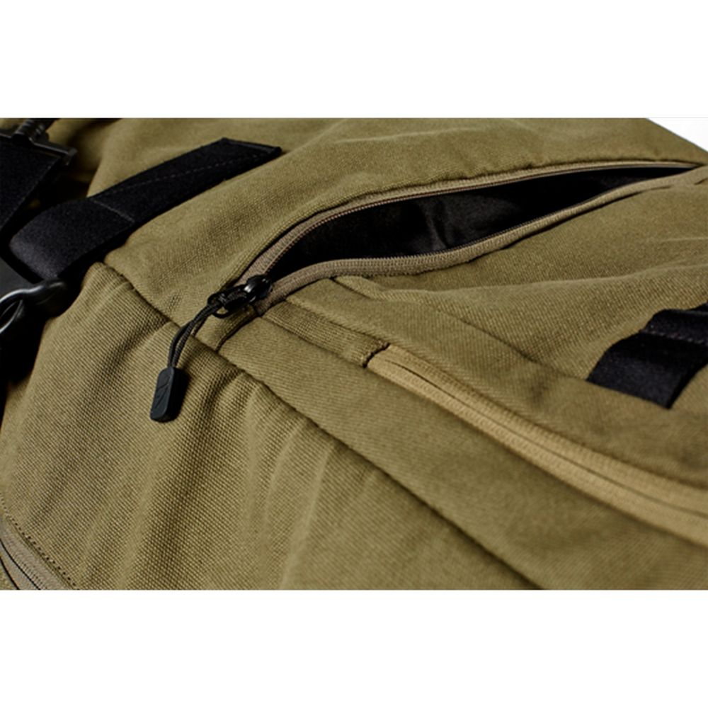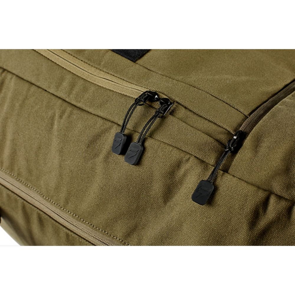 Wojskowy system taśm montażowych umożliwia dopinanie dodatkowych akcesoriów, mniejszych toreb lub elementów niezbędnych w podróży. Zewnętrzny schowek na akcesoria pozwala przechowywać drobne przedmioty, do których chcesz mieć szybki dostęp. Wzmocnione uchwyty oraz odpinany pasek na ramię zapewniają komfort noszenia i łatwy transport.