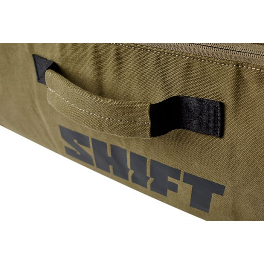 Torba Shift Duffle Bag została wykonana z grubego, wytrzymałego płótna, inspirowanego wojskowymi torbami transportowymi. Materiał skutecznie opiera się błotu, kurzowi, brudowi i wilgoci, dzięki czemu torba doskonale sprawdza się na torach, w terenie oraz w trudnych warunkach pogodowych.