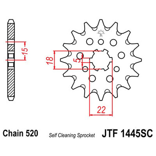 Zębatka przednia JT F1445-12 SC, RAC 12Z, rozmiar520 szerokie zęby 5 średnica wewnętrzna 18/22