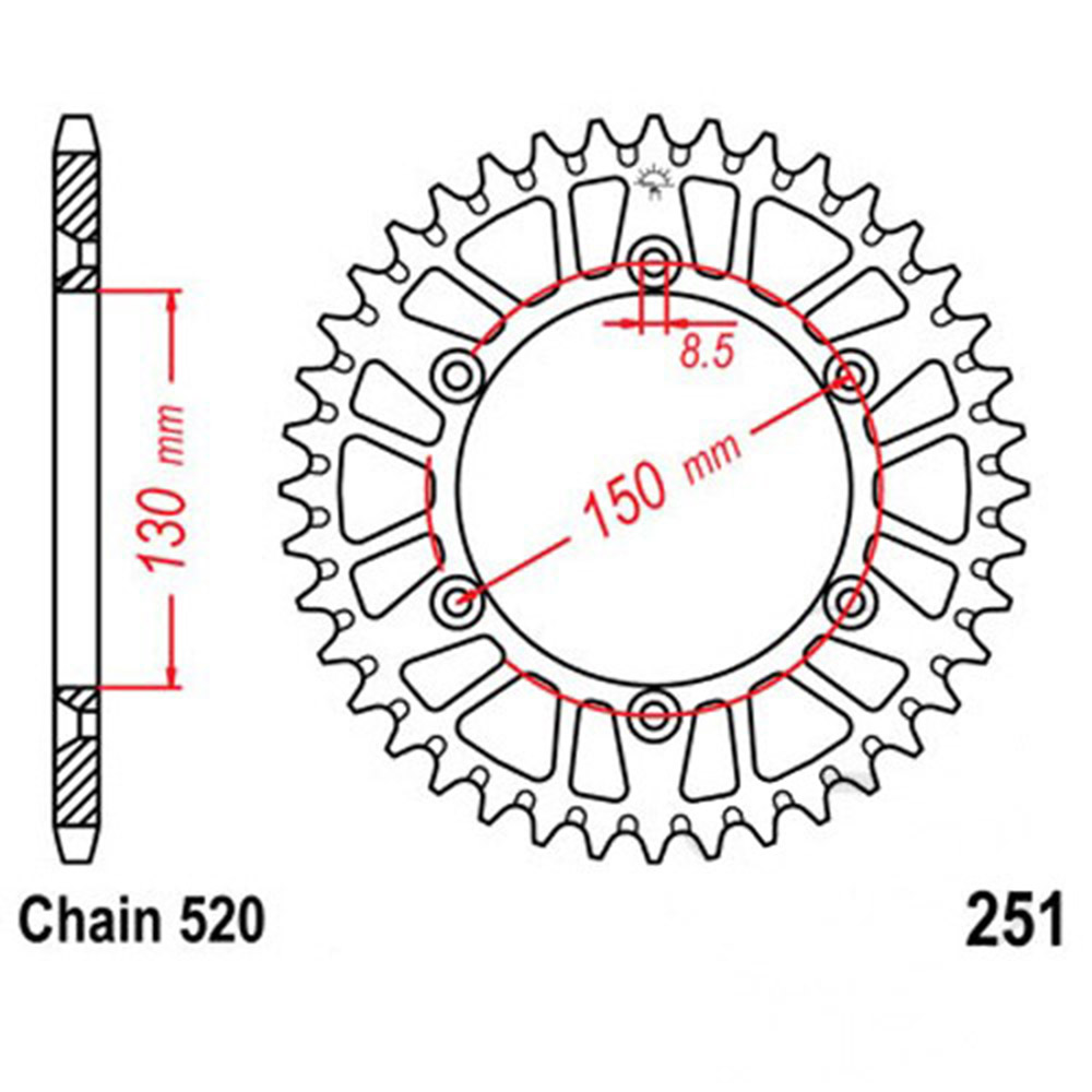 Zębatka tylna aluminiowa JT A251-50 50Z rozmiar 520