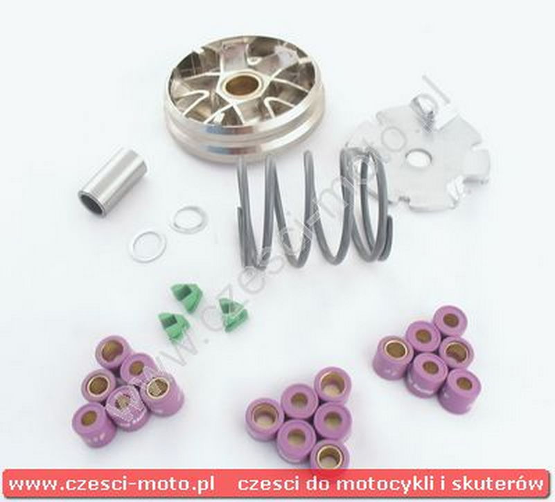 W skład zestawu wariatora wchodzą rolki 17x13,5 3.5g, 4.5g i 6.0g, sprężyna centralna sprzęgła, sworzeń 20mm, ślizgi wariatora.
