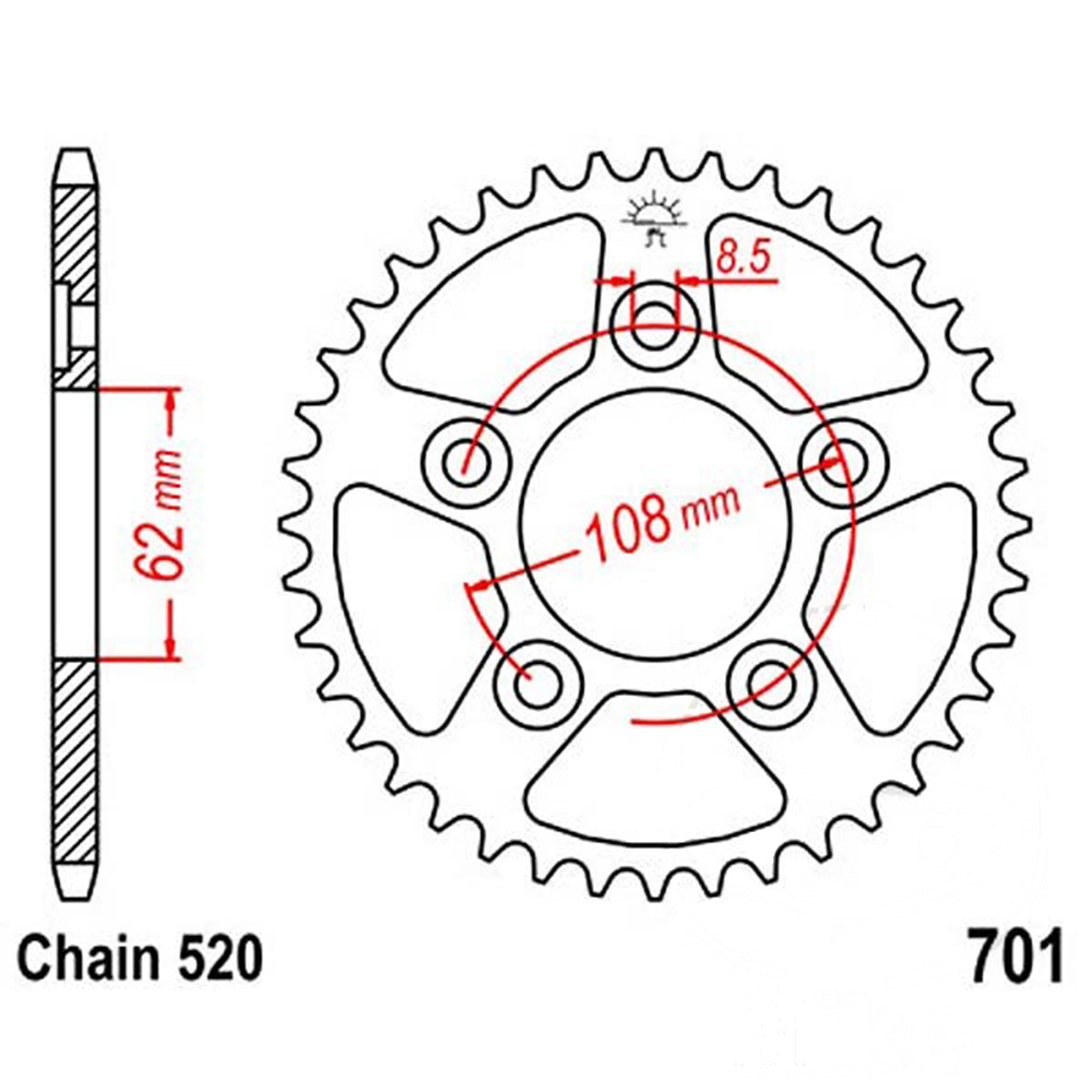 - Średnica koła śrub mocujących: 108 mm