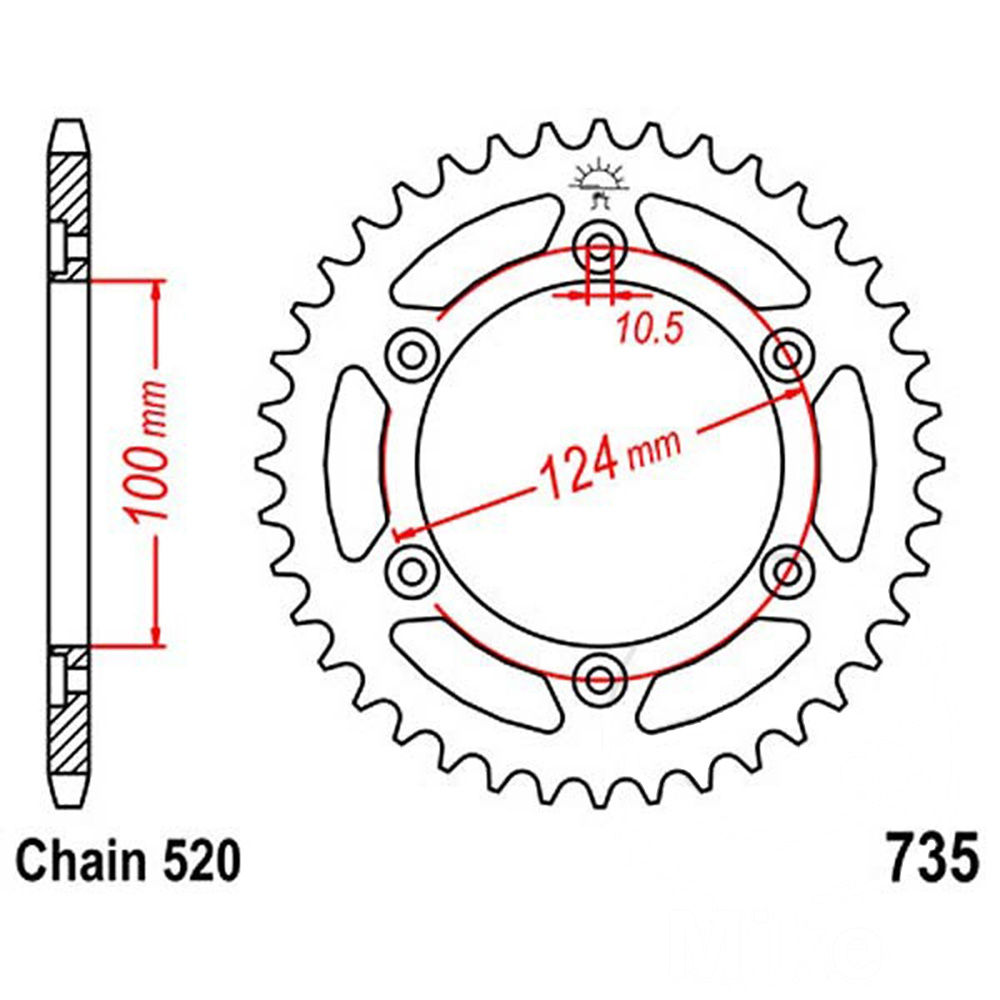 Zębatka tylna stalowa JT R735-44 44Z rozmiar 520