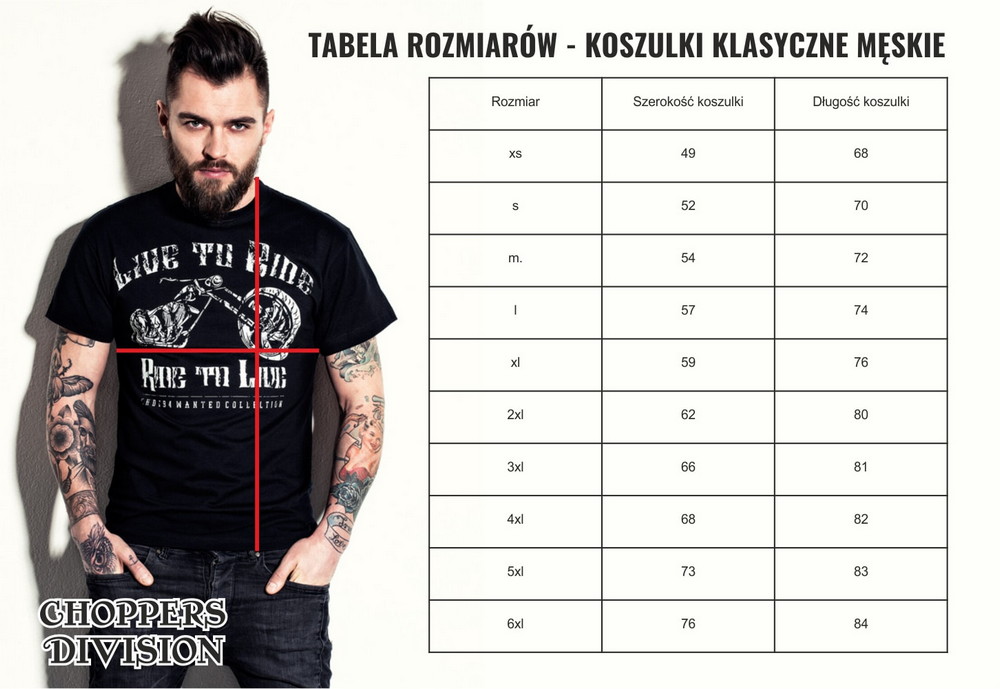 Koszulki męskie firmy Chopper Division, to idealna propozycja dla fanów ciężkich motocykli. Każda koszulka została stworzona z wysokiej jakości materiału, czyli są 100% bawełniane. Co sprawia, że koszulka jest bardzo wytrzymała na pranie oraz nie blaknie czerń. Posiadamy różne rodzaje koszulek męskich.