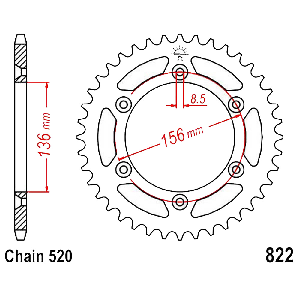 Zębatka tylna stalowa JT R822-43, 43Z, rozmiar 520