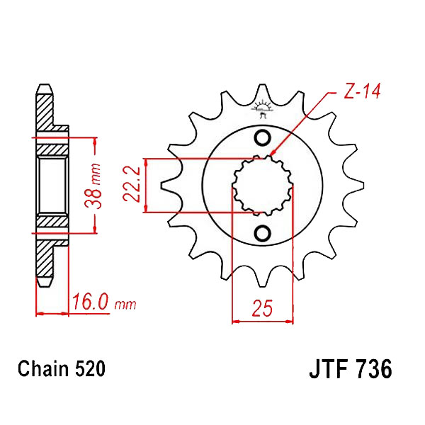 Zębatka przednia JT F736-14, 14Z, rozmiar 520