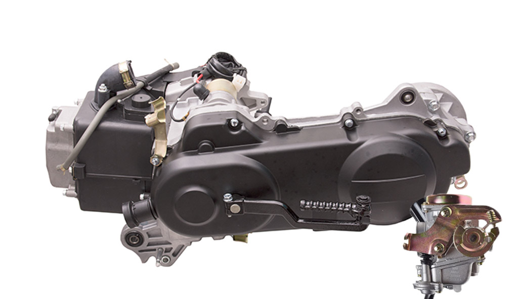 Kompletny silnik do skuterów 4T/GY6/139QMB na kołach 12" i z pojedyńczym tylnym amortyzatorze (ze względu na krótsza oś koła)