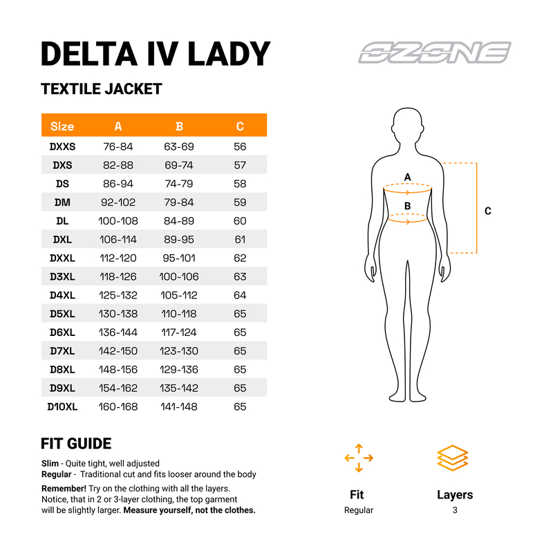 Ozone Delta IV to damska kurtka motocyklowa stworzona na różne warunki pogodowe. Wyposażona w wypinaną membranę OZONE AQUA Tech, chroni przed wiatrem i deszczem, a dodatkowa podpinka sprawdza się w chłodniejsze dni. Na barkach i łokciach znajdują się protektory, a regulacje w biodrach i rękawach zapewniają idealne dopasowanie.