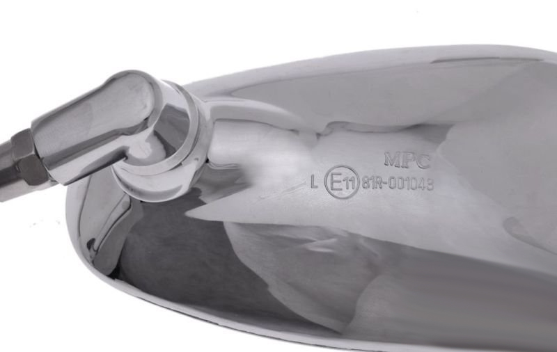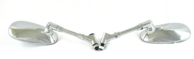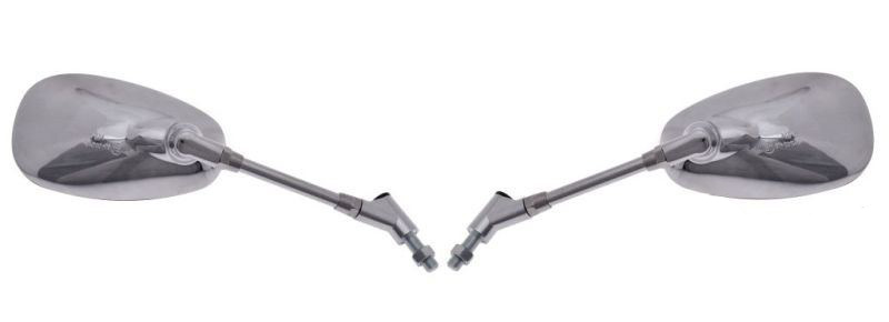 Uniwersalne lusterka w kolorze chromowym, owalne na stopce z gwintem M10 (lewy + prawy gwint- stosowany w motocyklach Yamaha)