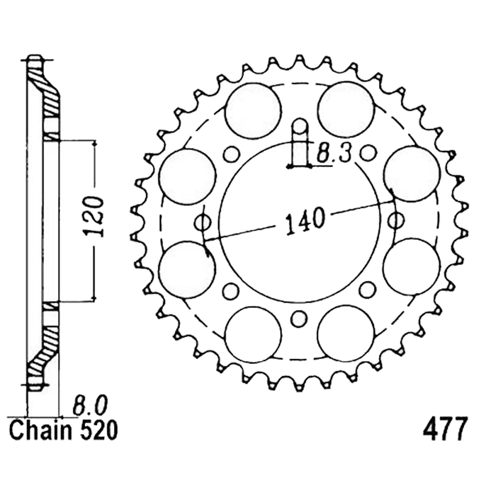 Zębatka tylna 477-43, 43 zęby, rozmiar 520