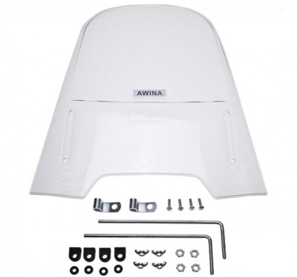 Szyba ta przeznaczona jest głównie do nieobudowanych skuterów i motorowerów. Zabezpiecza w czasie jazdy przed wiatrem i deszczem Bezbarwna. W komplecie mocowania.