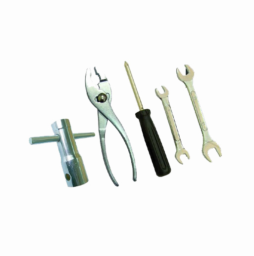 Zestaw typowych narzędzi do narzędziówki, znajdującej się na wyposażeniu większości motocykli.