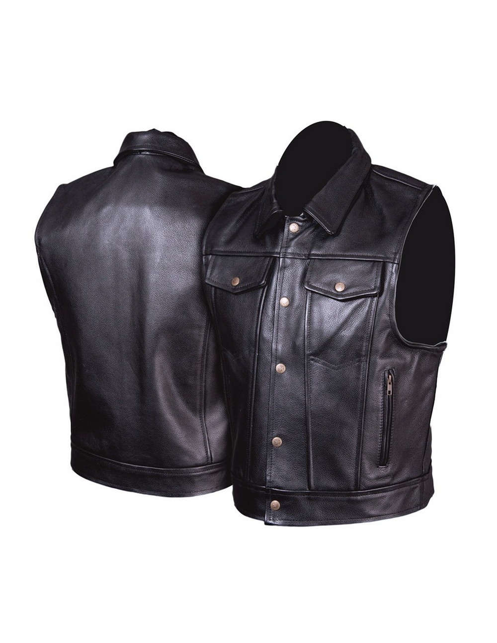 Kamizelka z wysokiej jakości skóry bydlęcej o klasycznym kroju.