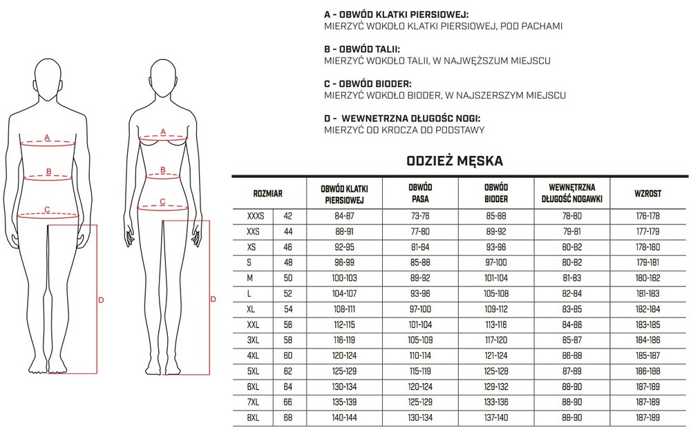 - Swoboda ruchów: Elastyczne wstawki w miejscach narażonych na naprężenia, nad kolanami oraz na lędźwiach