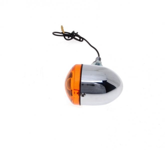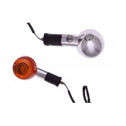 Kierunkowskaz metalowy, chromowany z pomarańczowym kloszem.