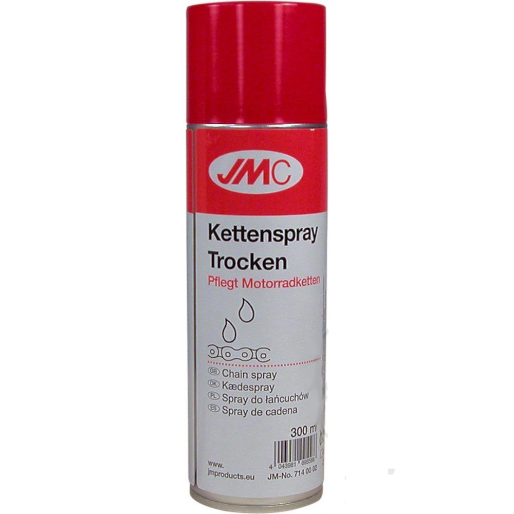- Smar do łańcucha JMC 300 ml suchy w sprayu,całkowicie nowa, syntetyczna, beztłuszczowa formuła smaru, oparta na bazie teflonu. Jego właściwości penetrujące i uszczelniające gwarantują wydłużenie żywotności łańcuchów napędowych oraz trwałą ochronę przeciwkorozyjną.