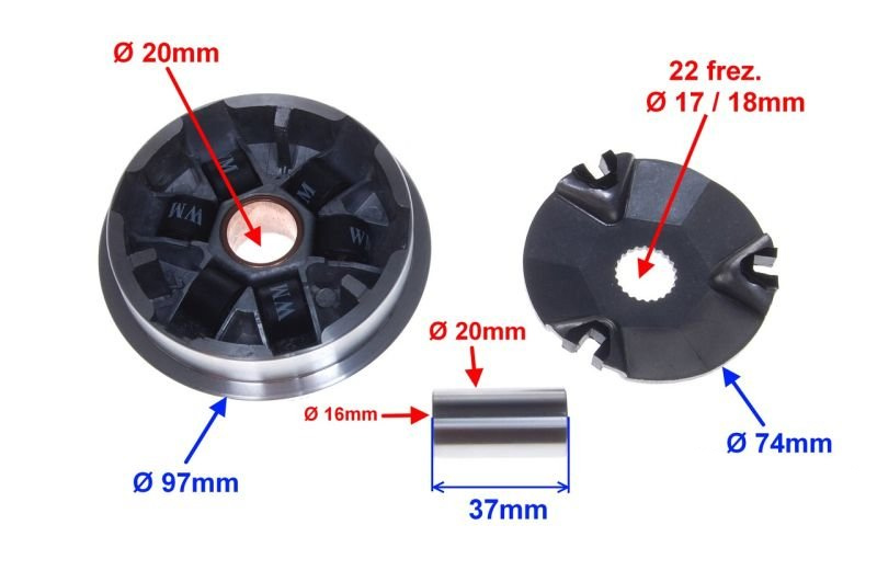 Wariator przeznaczony do popularnych skuterów 2T takich jak: