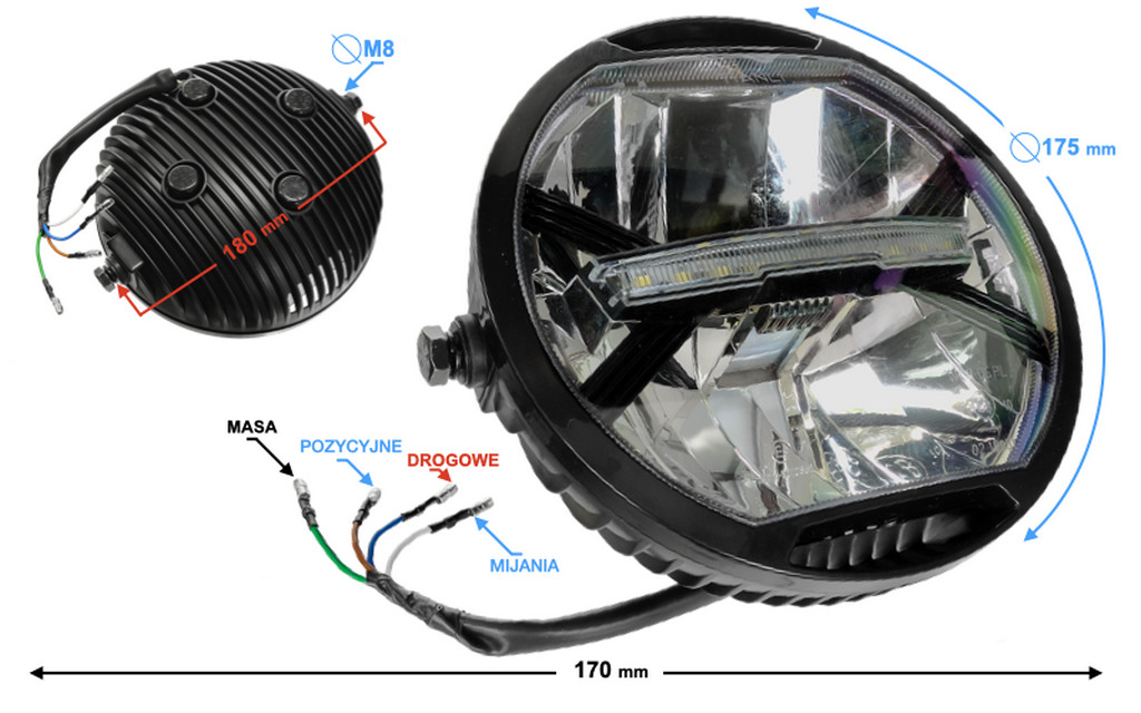 Dzięki reflektorowi LED motocyklowemu Twój pojazd nabierze nowego charakteru. Lampa LED jest gotowa do montażu i podłączenia, co sprawia, że modernizacja oświetlenia przebiega szybko i bezproblemowo. Postaw na bezpieczeństwo, styl i niezawodność – wybierz reflektor LED z homologacją i ciesz się doskonałą widocznością w każdych warunkach.