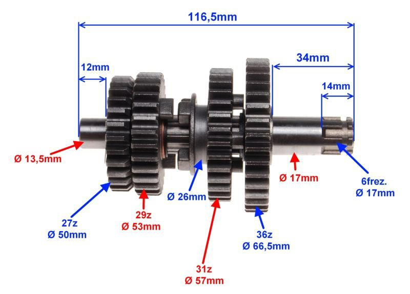 Wymiary zębatek: Z36, Z31, Z29, Z27