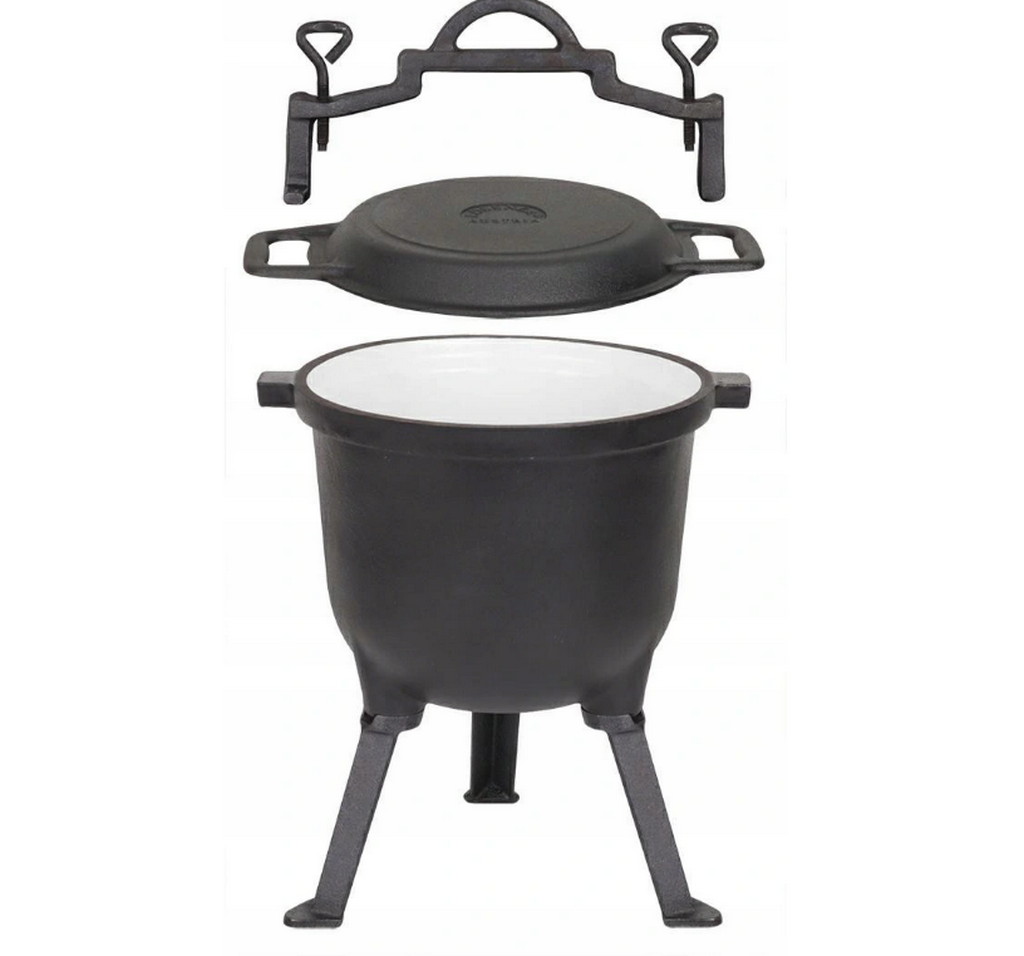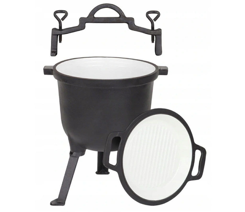 KOCIOŁEK ŻELIWNY 8L Z PATELNIĄ GRILLOWĄ
