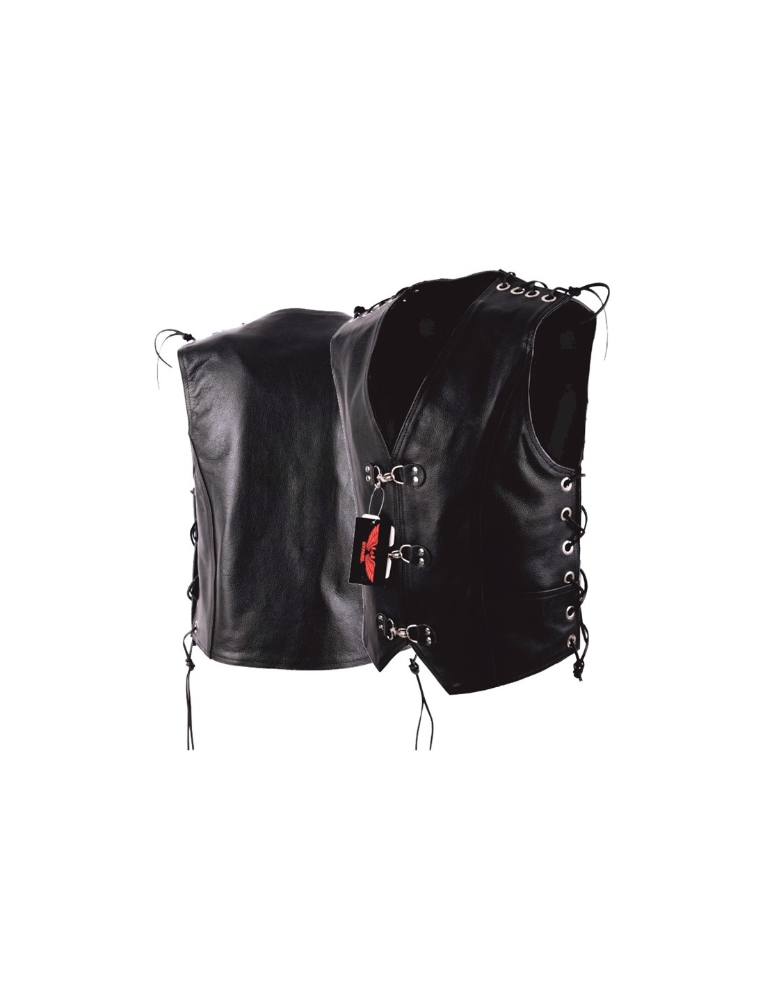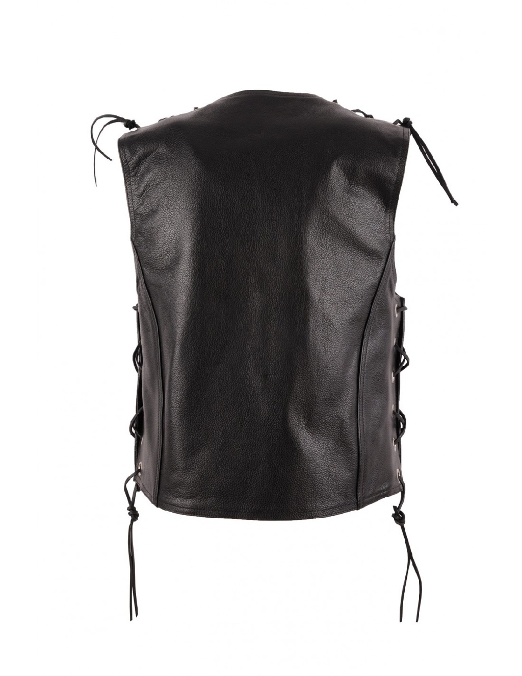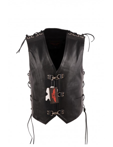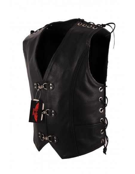 Kamizelka motocyklowa skórzana z wiązanymi barkami i bokami - opis produktu: