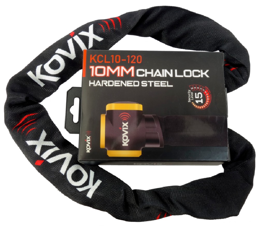 Zaletą łańcucha zabezpieczającego jest jego uniwersalność. Może być użyty zarówno do blokowania koła motocykla, do spięcia go z elementem otoczenia, ale również jako zabezpieczenie na bramę garażu, w której przechowujesz maszynę. Łańcuch zabezpieczający marki KOVIX wykonany jest z wysokiej jakości stali o heksagonalnym przekroju ogniw, dzięki czemu jest niezwykle wytrzymały i odporny na próby przecięcia lub zniszczenia. Łańcuchy KOVIX wyposażone są w materiałową osłonę, która zapobiega zarysowaniu elementów motocykla, który zapobiega zarysowaniu felg i innych elementów pojazdu.