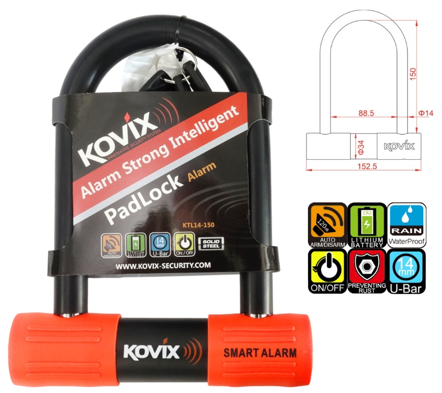Kłódka U-Lock z alarmem KOVIX KTL14-150 czarna