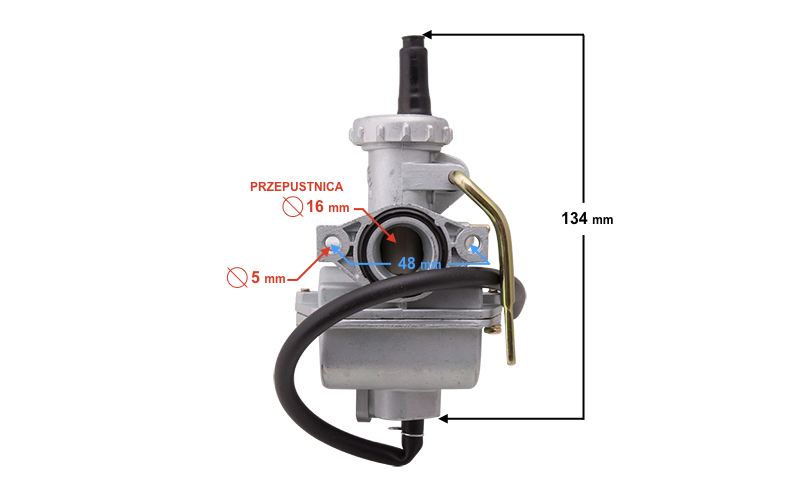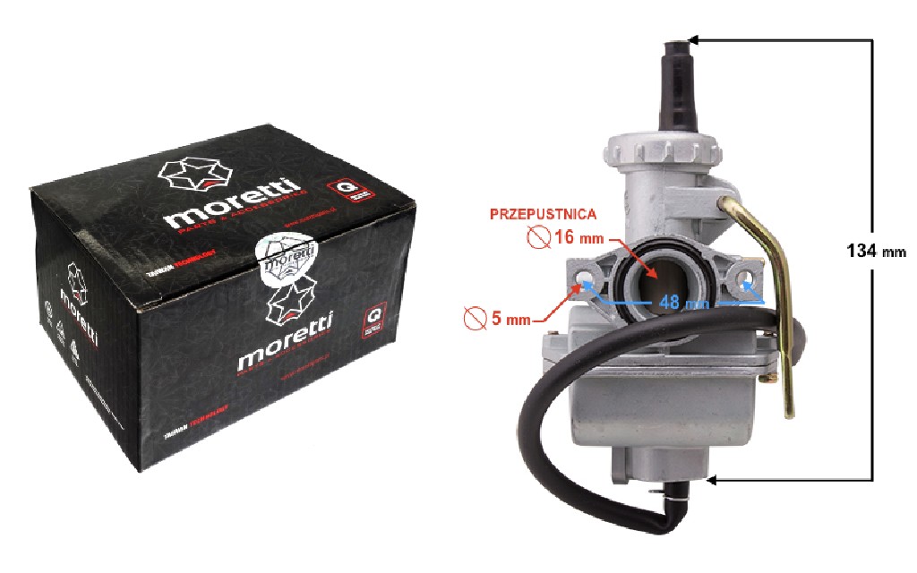 Gaźnik Moretti PZ16, 80cc 4T, p.16mm, ssanie na dźwignię