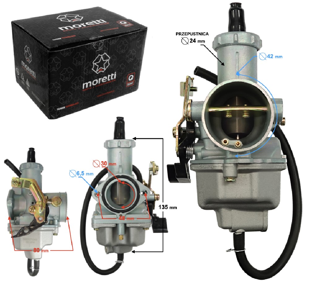 Gaźnik Moretti PZ30 250cc 4T, p.24 mm, ssanie na linkę