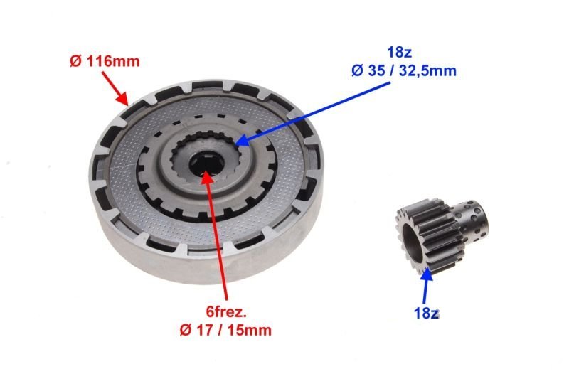 Produkt sprzedawany jako kompletne sprzęgło z dociskiem - gotowe do montażu. Idealne jako zamiennik do popularnych silników 4T oraz szerokiej gamy modeli marek takich jak Barton, Junak, Romet czy Zipp.